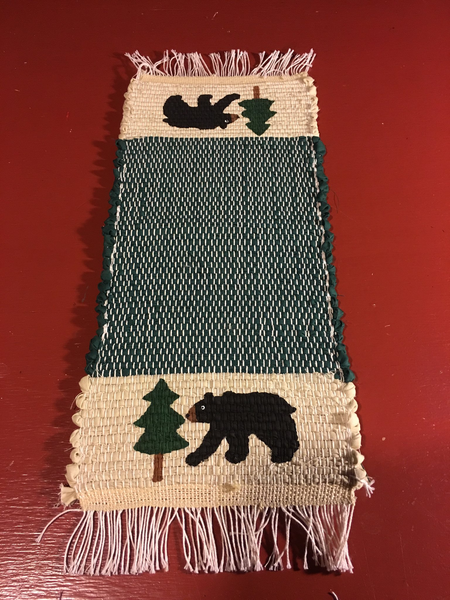 My Grandma taught me to weave on my first loom over 37 years ago. I started out selling my rugs in Green Bay, WI at farm markets and small craft shows. We moved up to Northern Wisconsin in 1998, and in 2004 my husband Mark joined me weaving full time. We expanded our weaving business to 12 looms which enables us to offer 5 different rug widths, and many lengths. We also weave wall hangings, tapestries, table runners, placemats, tank toppers, hand bags, mini runners and mug rugs.