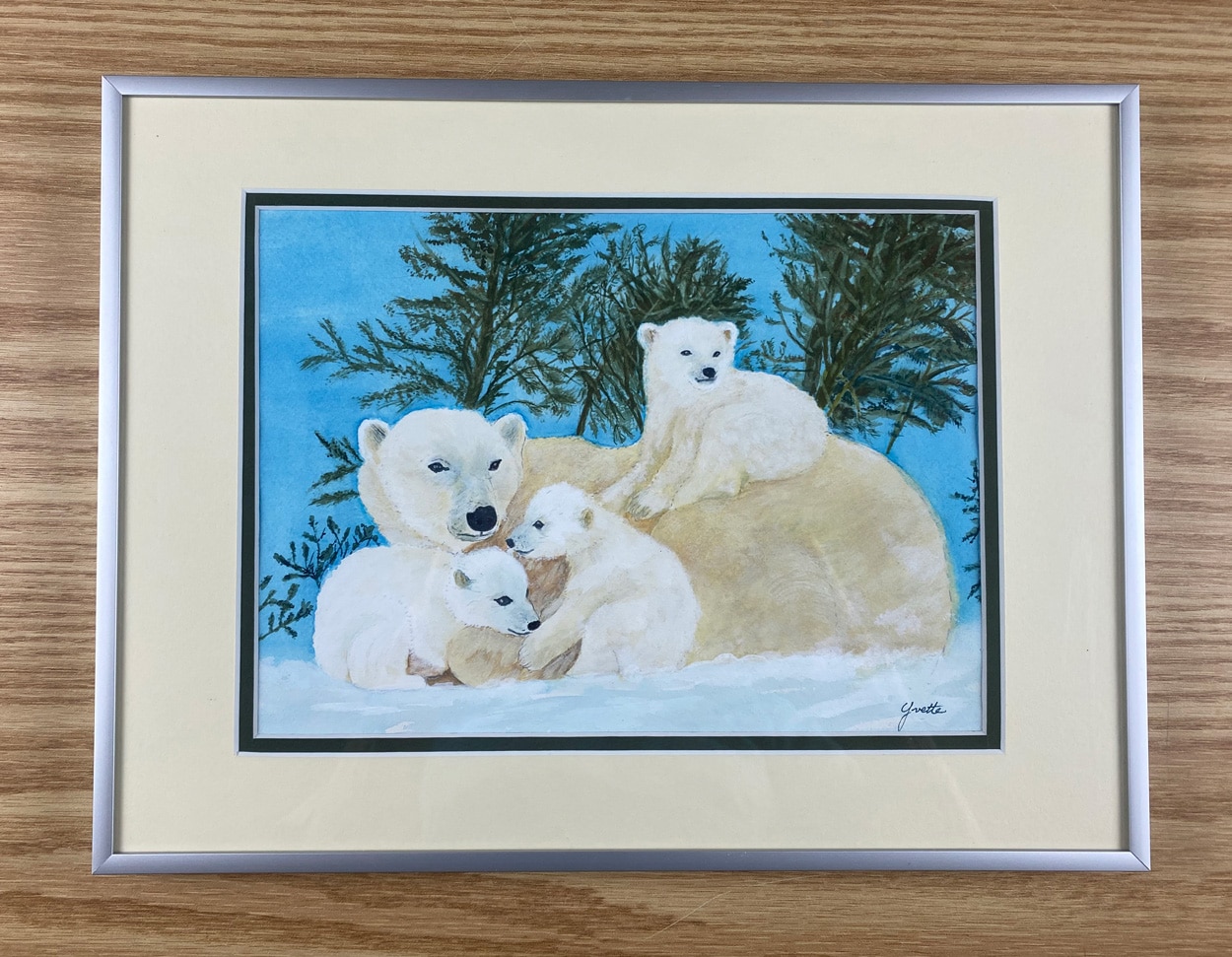 Loss Of Habitat means real hardship ahead for this family of polar bears. Watercolor | 16″ W x 12.25″ H