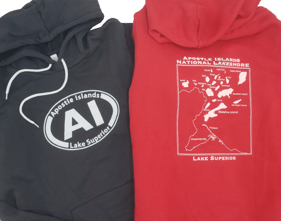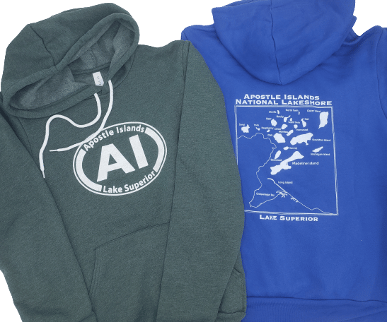 Ultra soft front pocket, hooded sweatshirt with Apostle Islands AI design. AI logo on left front. Map of Apostle Islands on the back. A must have if you’ve ever visited the Apostle Islands! Made from 52/48 airlume combed and ringspun cotton/polyester. Bella + Canvas brand.