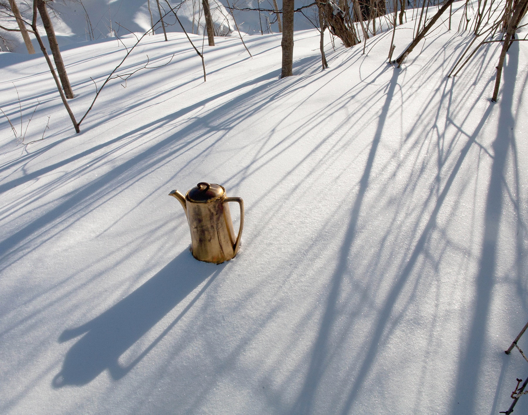 When I was selected as one of eight artists in the 2014 Wisconsin Community Supported Arts program, I created a series of photographs called “Still Lives in Moving Places.” I photographed everyday objects—a glass vase, a pewter creamer, a white enamel pitcher—in places that included Meyers Beach, Copper Falls State Park, and my yard in Washburn deeply covered in snow. These still lifes occurred in places where water, wind, and light had been moving; and, in the making of these images, gratitude for natural beauty and love for the people associated with those objects moved through me.