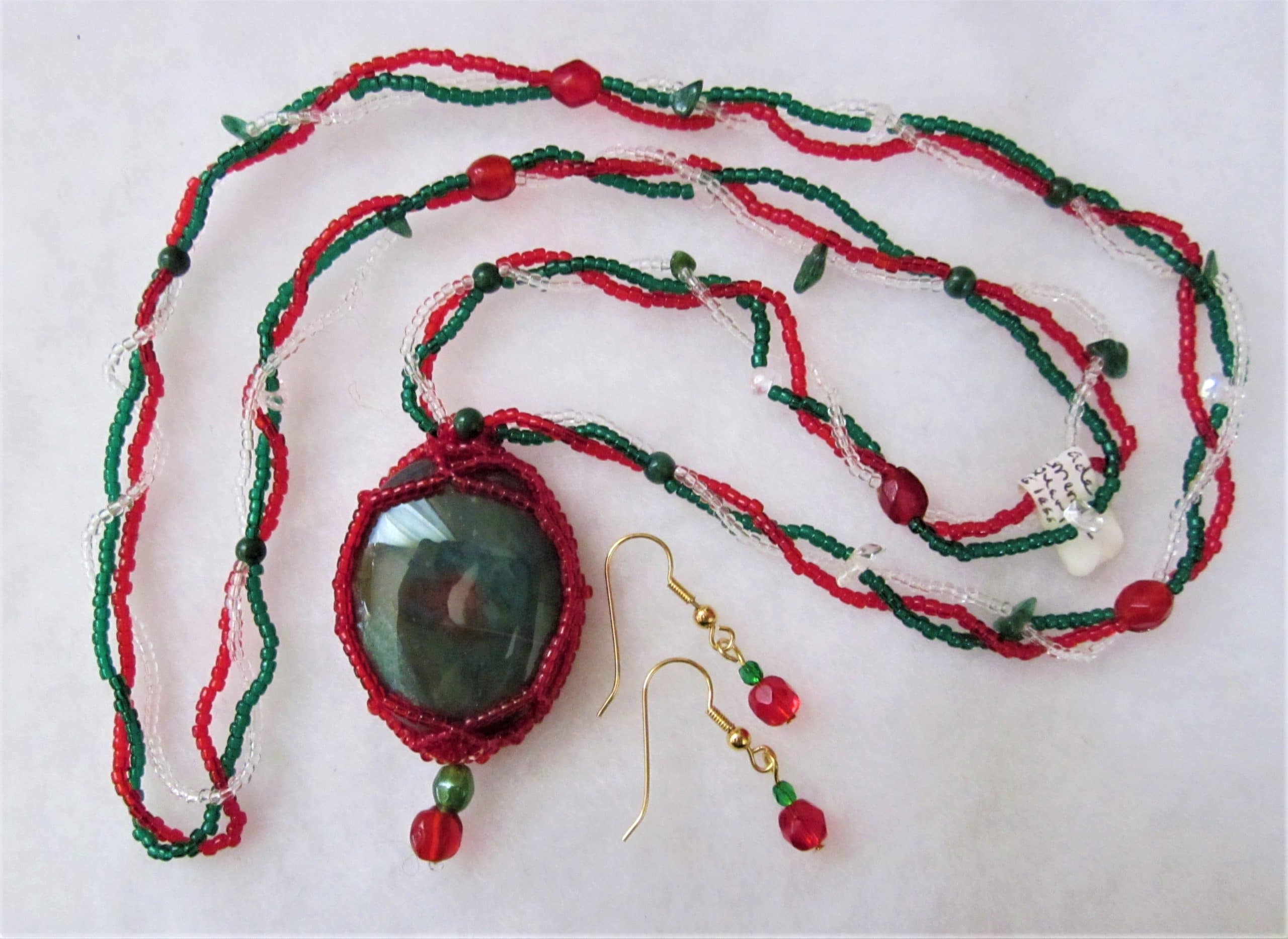 Blood Stone Wrap Christmas Necklace & Earings Set