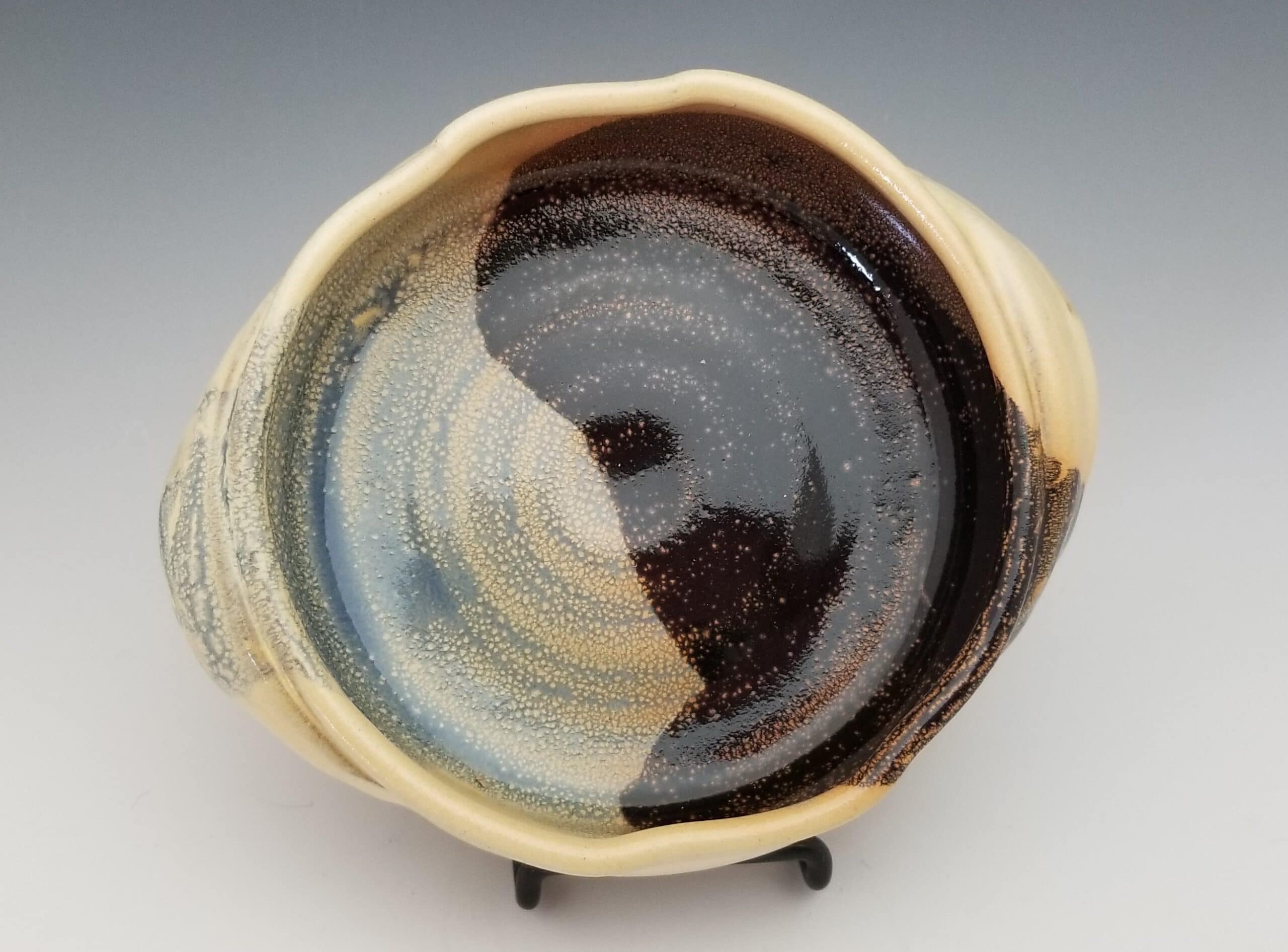 A beautiful way to serve a baked brie, or any appetizer. Blue and speckled brown glaze.. Oven, dishwasher and microwave safe. 1.5 by 6.5 inches. Recipe card included.