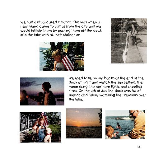 This book is a photo memoir depicting old photographs of family and friends on Madeline Island during the summers in the 1950s and 1960s. The book started out as an assignment for a class I ook several years ago. The assignment was to write a book about something with a lot of memories attached to it. I didn’t have to think too hard to decide on writing about the dock where I had such fond memories of my childhood.