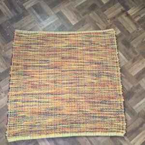 Handwoven yellow/orange acrylic rug 32” x 29”