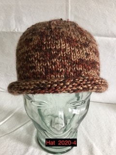 Hand knit beanie type hat. 100% Wool. One size fits most. Hand wash, dry flat.