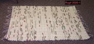 Handwoven wool rug. Weft is wool blanket remnants from Faribault Woolen Mills. Warp is cotton rug warp. Size is 49" x 28". Machine wash cold, line dry.