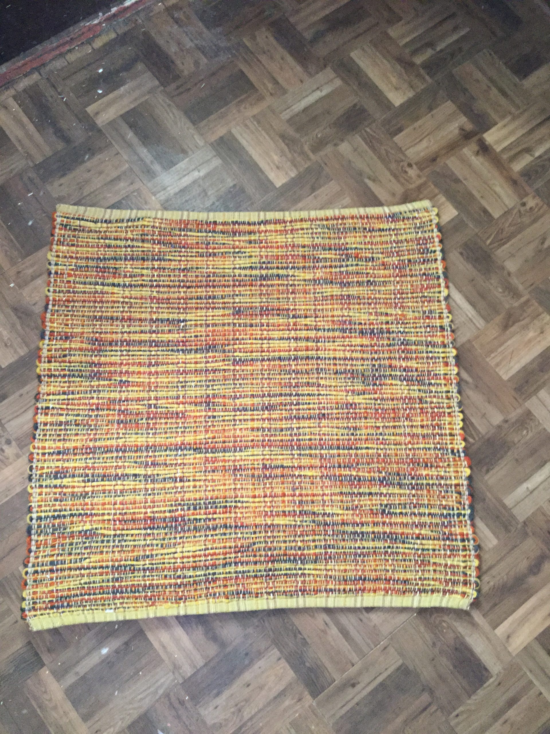 Handwoven yellow/orange acrylic rug 32” x 29”