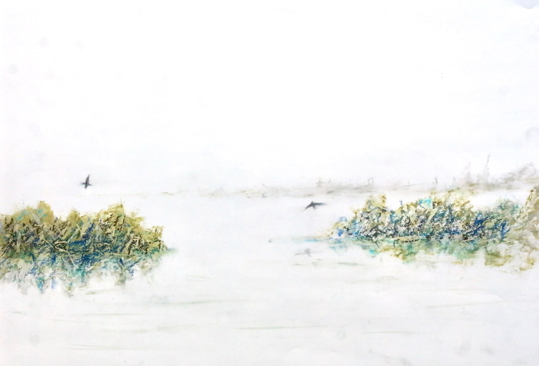 When I was selected as one of eight artists in the 2014 Wisconsin Community Supported Arts program, I created a series of photographs called "Still Lives in Moving Places." I photographed everyday objects—a glass vase, a pewter creamer, a white enamel pitcher—in places that included Meyers Beach, Copper Falls State Park, and my yard in Washburn deeply covered in snow. These still lifes occurred in places where water, wind, and light had been moving; and, in the making of these images, gratitude for natural beauty and love for the people associated with those objects moved through me.