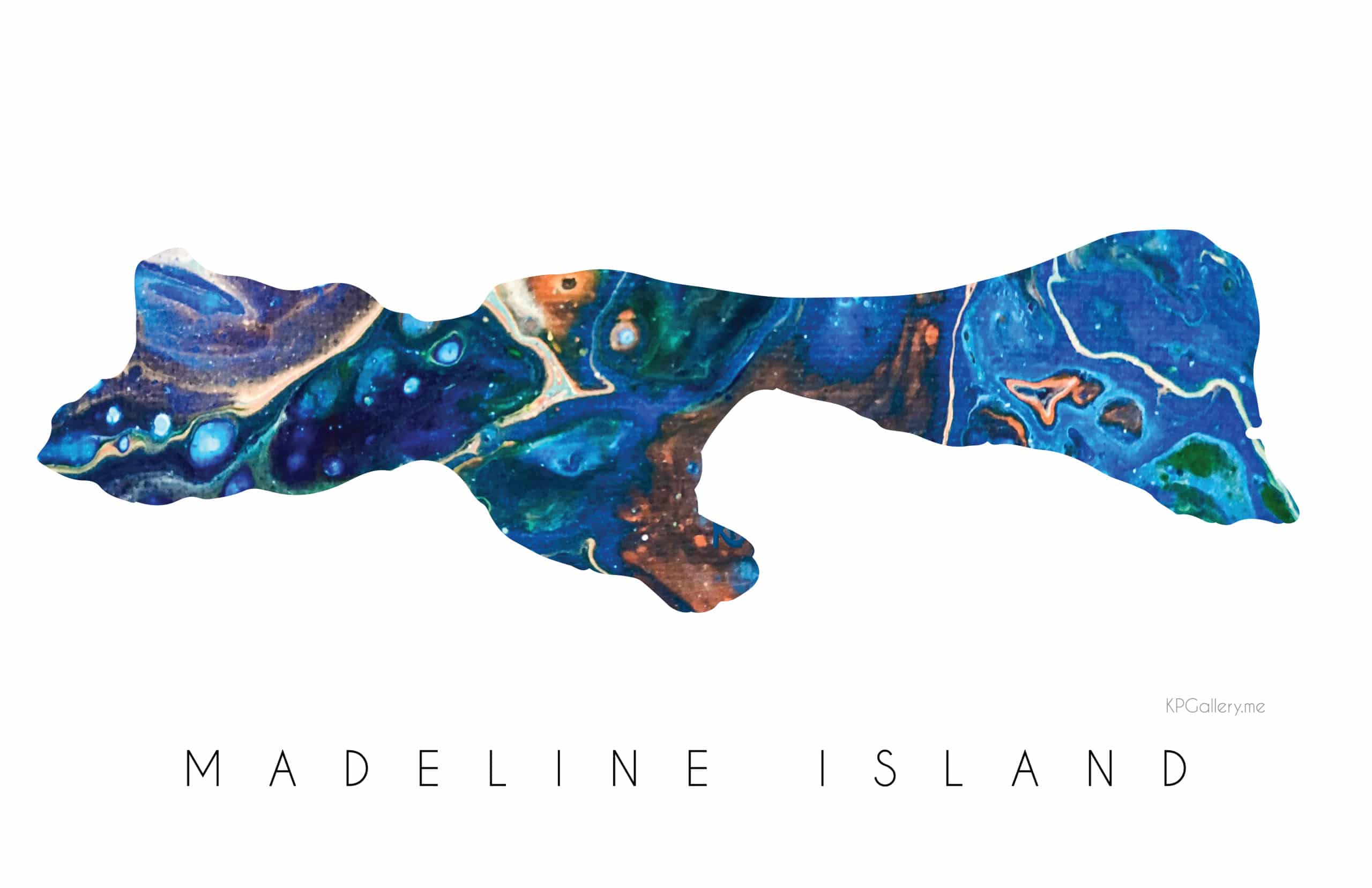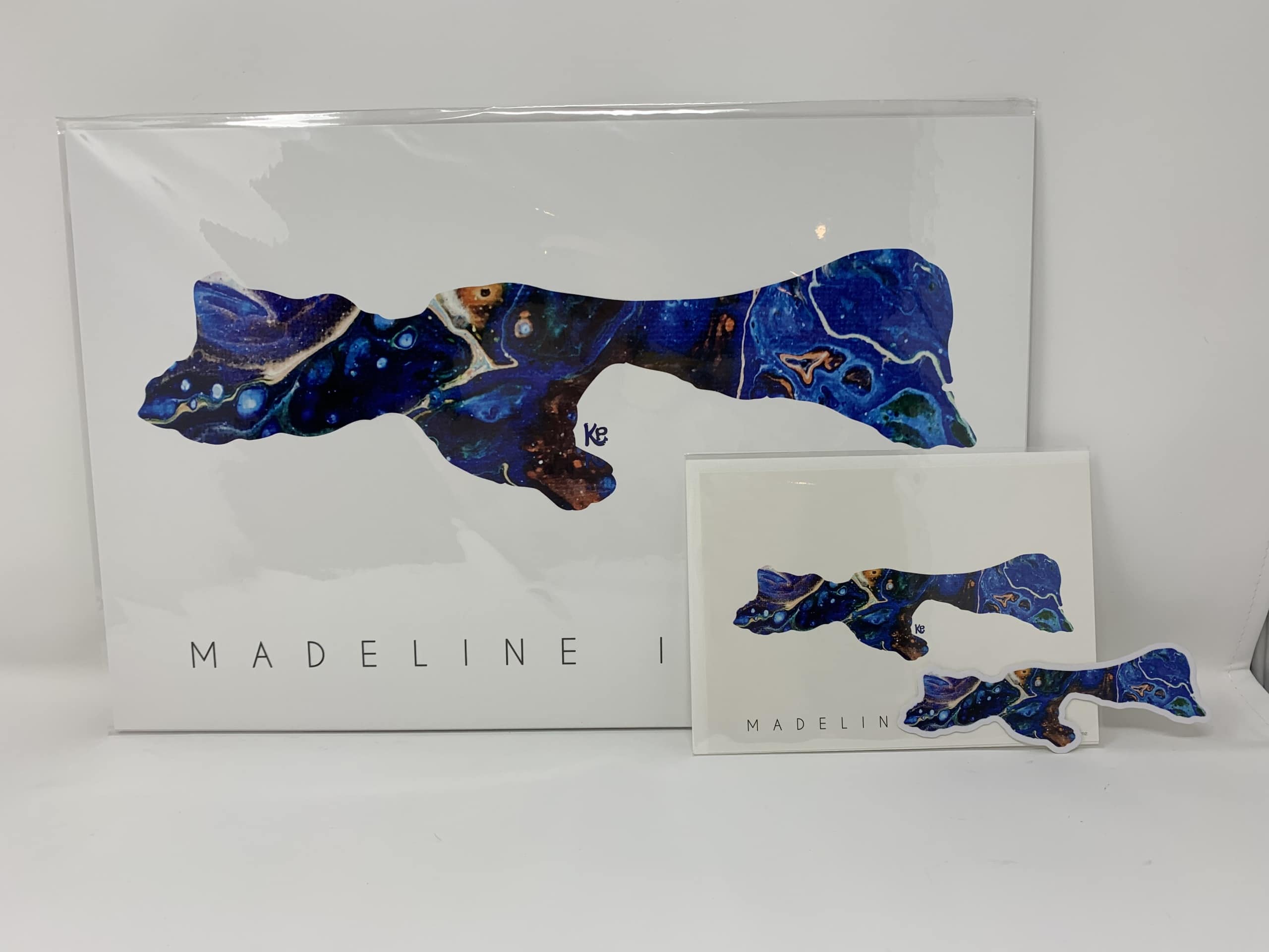 Choose from an 11 x 17 print, greeting card, magnet, and/or sticker featuring this original Madeline Island blue design.