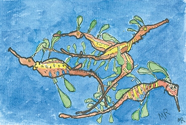 I call my business “The Illustrated Life” because I carry a little watercolor book with a fine-tipped ink pen in my pocket, and whip them both out when something strikes my fancy: beauty, whimsy, the backs off people’s heads in a concert or a meeting, or a space with challenging angles (buildings and interiors) and strong colors. (the deep orange/red of “Inga’s Room” in this year’s calendar is my favorite color.  I am both dog and butterfly - one drools, the other flits about.  Contradictory, n”est-ce pas? I draw small, but I love all my drawings.  They make me happy and more expansive. As someone who has journaled most of her life, it has also taken a long time for me tl move to drawing as my primary way of communication.  but drawing is so different from writing.  I generally go into a zone when I draw,  trying to translate a 3-dimensional visual reality onto a 2-dimensional flat page.I approach this challenge with a beginner’s mind which goes something like this: “Well I have no idea what I’m doing here, but let’s see what I can learn from myself.”