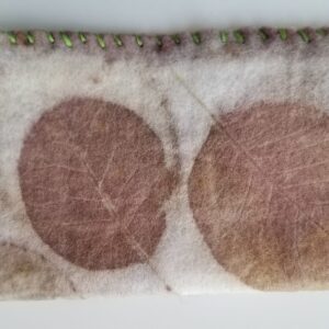 100% fine wool, printed with Madeline Island leaves. Hold your eye glasses in style with something special from the island and Lake Superior. Botanical printing is a process of using fresh plants, natural dyes, and a steaming process to print on the fabric. Embellished with glass beads.