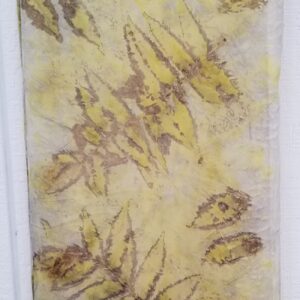 This one of a kind silk scarf is printed with leaves and plants from Madeline Island. Measures 12″ x 70″