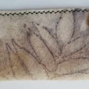 100% fine wool, printed with Madeline Island leaves. Hold your eye glasses in style with something special from the island and Lake Superior. Botanical printing is a process of using fresh plants, natural dyes, and a steaming process to print on the fabric. Embellished with glass beads.