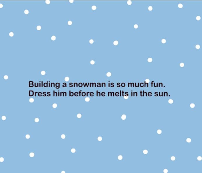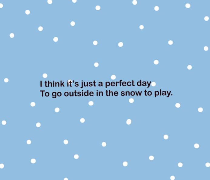 This is a poem about a young girl waking up to find that it had snowed the night before as she slept. It shows the process of getting ready to go out into the snow and describes the fun that can be had once she’s out the door with her dog.