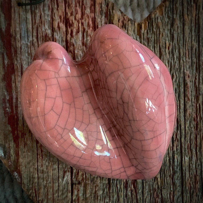 Porcelain hoiding heart – for comfort. Fits best in left hand is they are sculpted with my right. 3 x 3 x 1 1/2″
