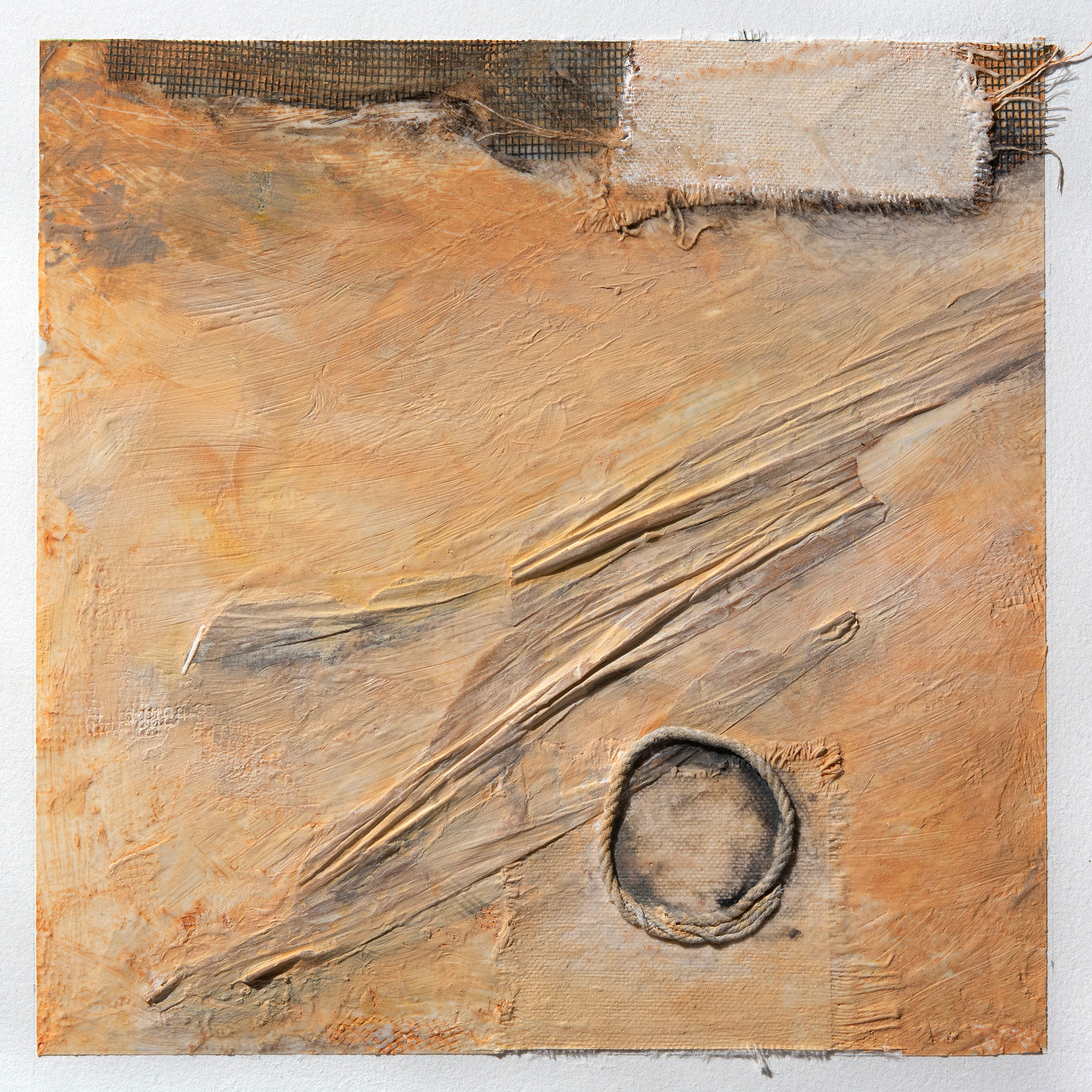 Materials: acrylic, fiber rush, wax linen, mounted on gator board Dimensions: 4” x 16” Note: Due to the materials, size, and weight of many of Jane's pieces, all shipping logistics & any related costs will need to be coordinated directly with the artist upon the artwork purchase. This will ensure that pieces arrive to you safely & securely.