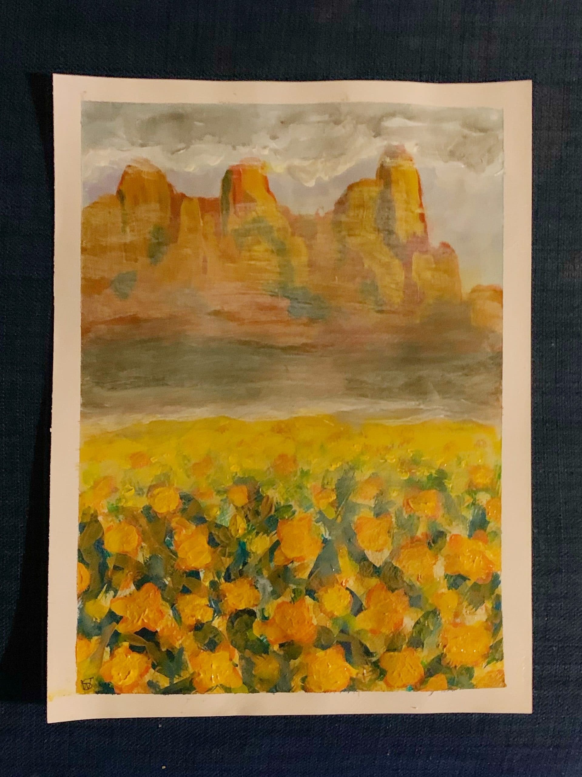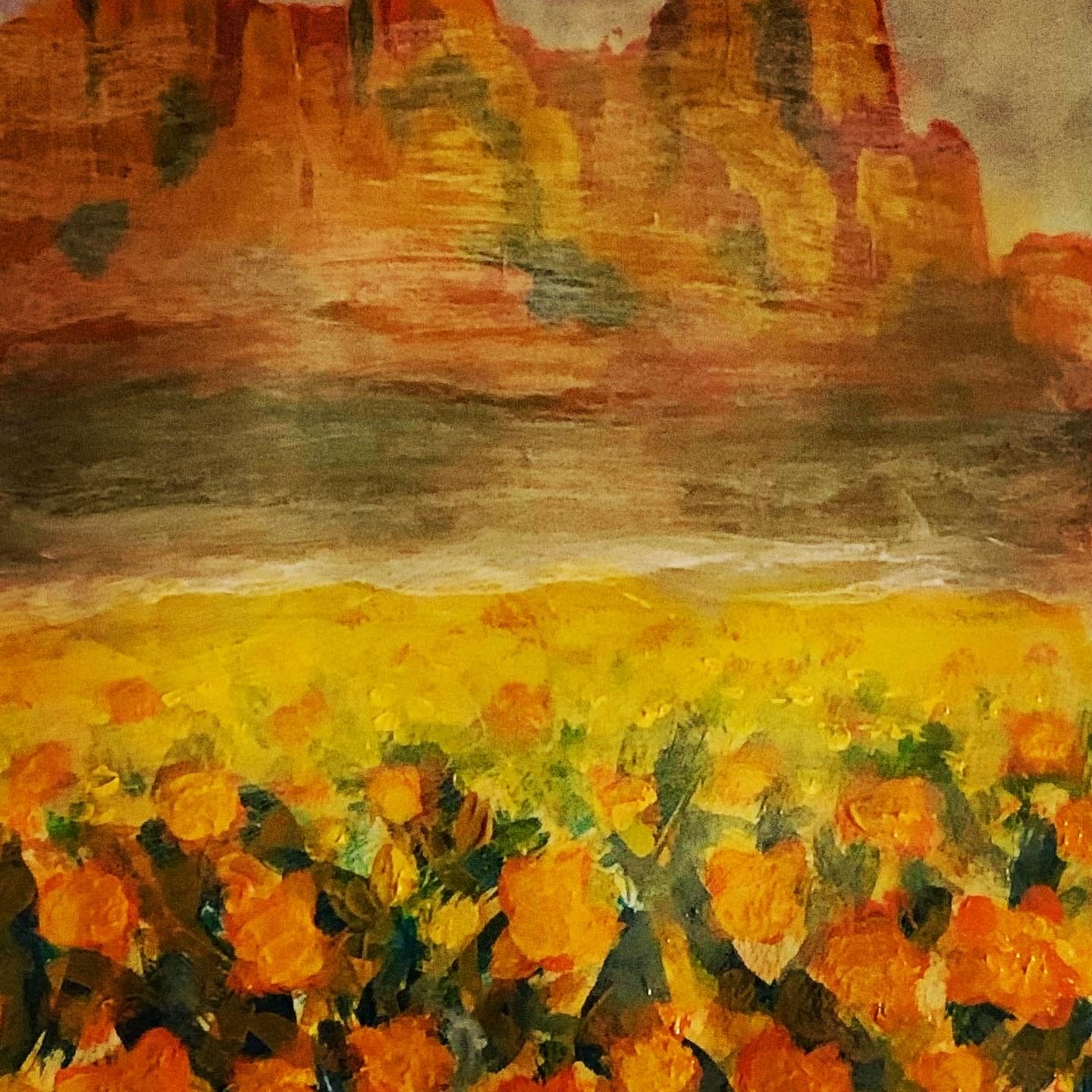 Colorful acrylic painting that reflects the color of the poppies and brilliance of the sun.