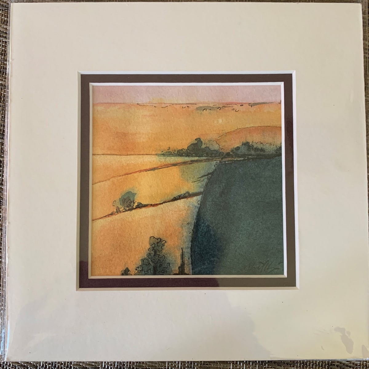 Watercolor, 4 1/2 x 4 1/2 in 8 x 8 inch mat.