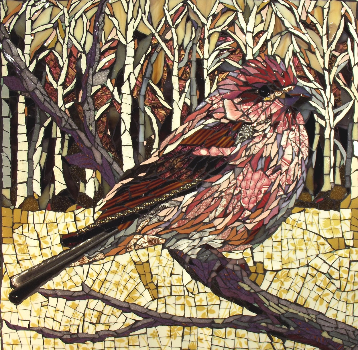 Materials: Materials include handmade ceramic tile, crockery, stained glass, recycled glass, and found objects.