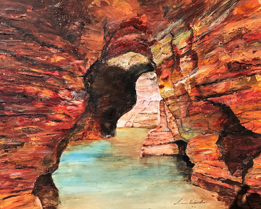 Ice Caves: "Ice Shards," January 2014 In January 2014, nearly 90 percent of Lake Superior froze, and the ice caves became accessible. The Lake Superior Ice Caves are located in the Apostle Island National Lakesore at Mawikwe Bay along the mainland. When the lake freezes, people can make the two-mile-long round-trip hike across the ice to see the caves, and during that season almost 140,000 people traveled from around the world to do that. Frozen waterfalls formed pillars of ice on the red cliffs. Icicles adorned cliff edges and the domed ceilings of caves. I took some of my favorite photographs during that frigid January.