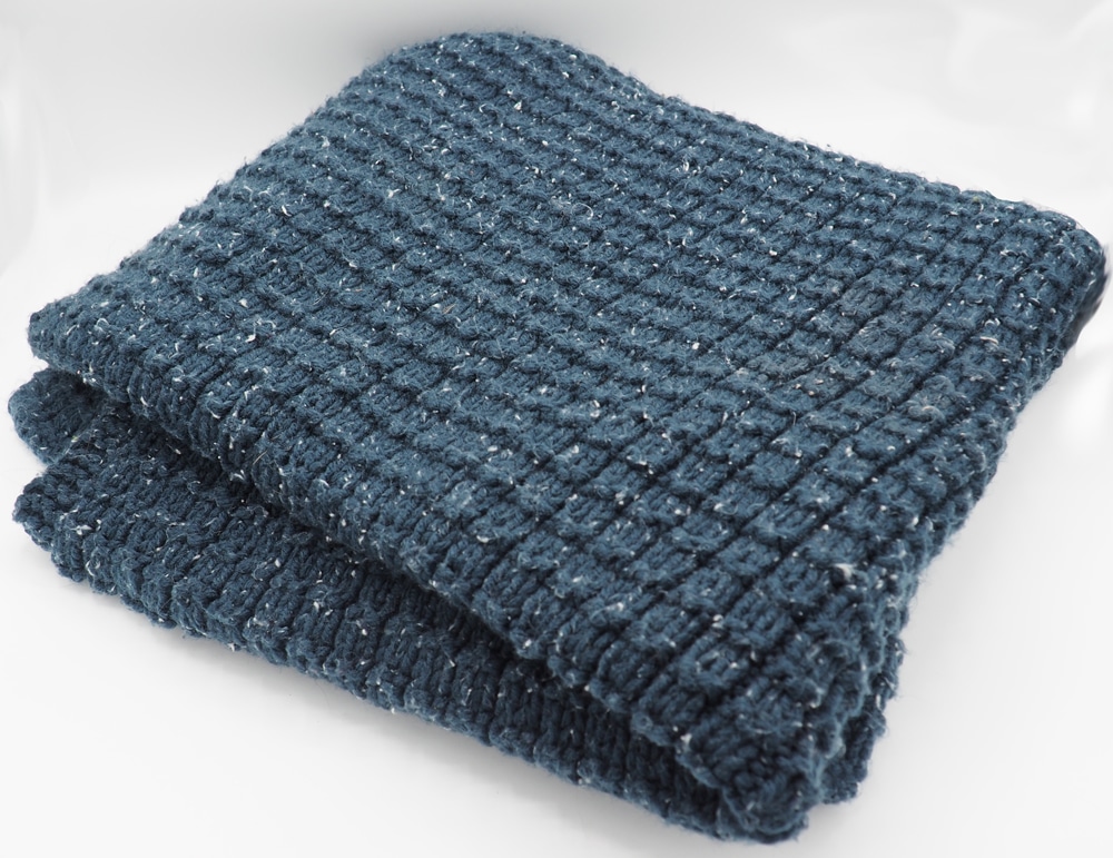 A beautifully-textured, hand knit accent piece for any living room or bedroom! A functional throw blanket knitted in a waffle pattern to create extra warmth. Choose from acrylic, wool, or a combination. 6′ x 4′. Colors: Choose your color preference! Single thread: one color; Double thread up to two colors.