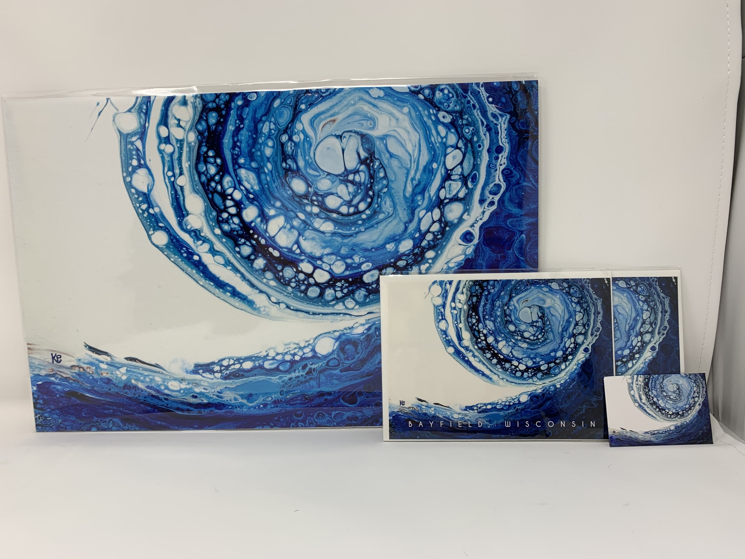 Choose from an 11 x 17 print, greeting card, magnet, and/or sticker featuring this original blue Wave design.